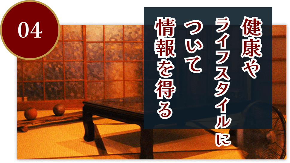熟会いクラブでは、健康やライフスタイルについて情報を得ることができます。同世代の方々が持つ健康に関する知識やライフスタイルのアイデアを共有し、より豊かな生活を送るためのヒントを得ることができます。